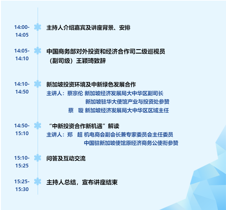 新加坡經濟發展局大中華區副司長、新加坡駐中國大使館產業與投資處參讚。曾任新加坡經濟發展局大中華區區域主任、物流部處長,負責中資企業的海外投資及協助其在東南亞市場的發展規劃和協調國際物流企業在新加坡的運營發展。2010-2017年間任職於新加坡港務集團運營部和業務發展部。國際工程與經濟技術合作專家。機電商會副會長兼專家委員會主任委員。曾任商務部對外投資和經濟合作司一級巡視員(正司級),中國駐新加坡大使館公使銜經商參讚。清華大學特聘教授、北京科技大學兼職教授。新加坡經濟發展局大中華區區域主任,負責推廣醫藥、化工、電動汽車、消費產業招商引資的事務。她致力於協助企業通過新加坡擴展總部、研發和先進的製造業務,從而尋求商機,提高競爭力。蔡璿也協助成都重慶等華西地區的企業對接與合作。曾任新加坡經濟發展局數字產業發展司處長、新加坡貿工部北美司助理司長。
