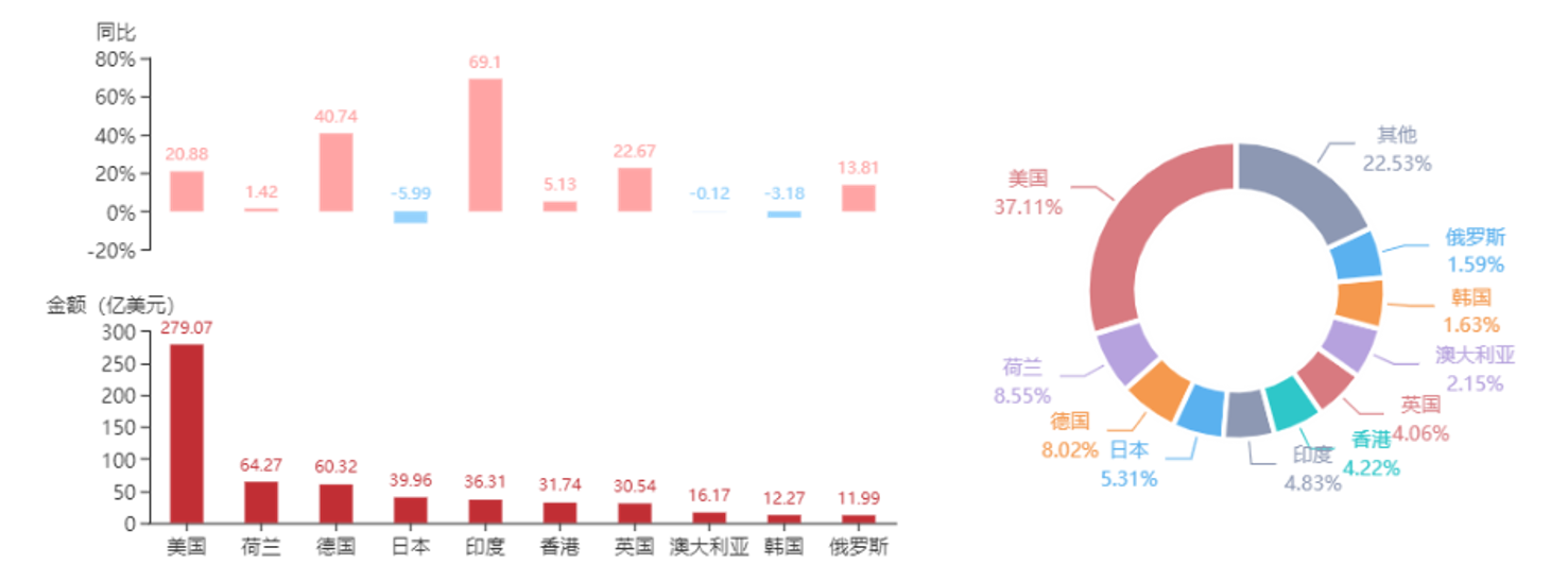 前9個(ge) 月,美國是我國筆記本電腦出口最主要的市場,出口額為(wei) 279.07億(yi) 美元,同比增長20.88%。9月當月,出口額為(wei) 33.88億(yi) 美元,同比增長4.49%。