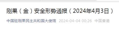 提醒!中國公民在剛果(金)遭劫