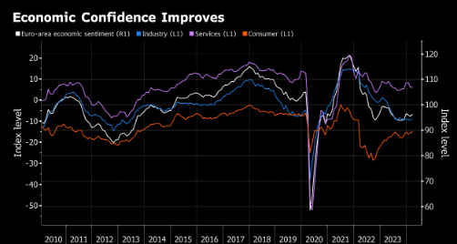 由20成員國組成的歐元區一直受到高利率、海外需求疲軟和廣泛不確定性的拖累,不過近期指標表明溫和複蘇可能即將到來。