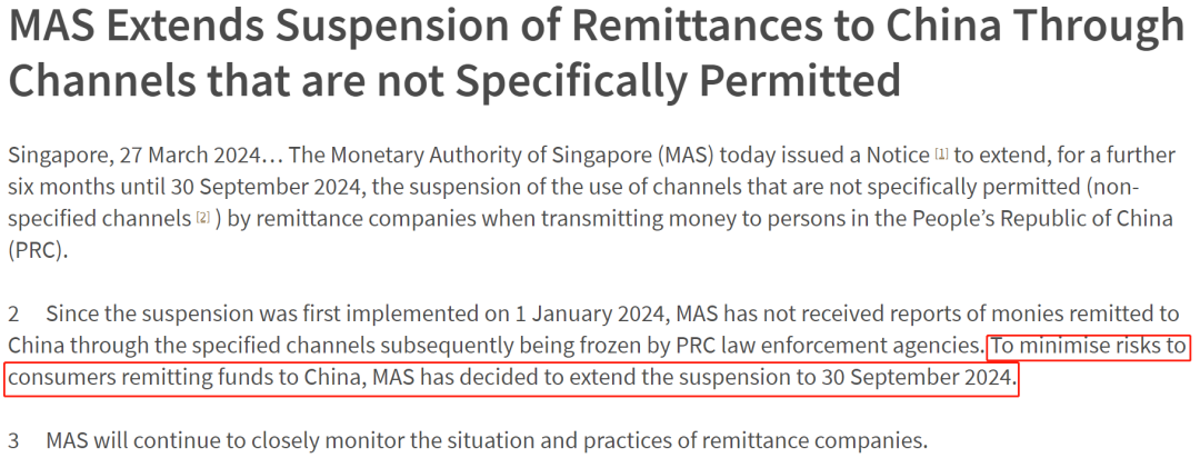 新加坡跨境匯款服務公司不得通過第三方代理匯款到中國禁令延期