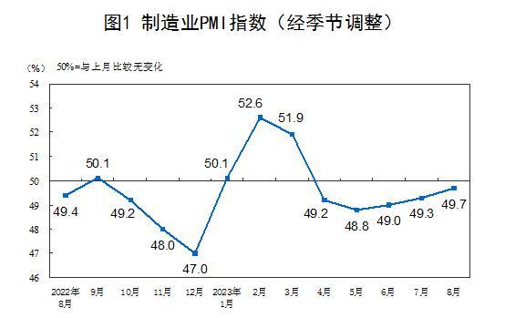 中新網8月31日電 國家統計局31日在官網發布2023年8月中國采購經理指數運行情況。數據顯示,8月份,製造業(ye) 采購經理指數(PMI)為(wei) 49.7%,比上月上升0.4個(ge) 百分點,製造業(ye) 景氣水平進一步改善。
