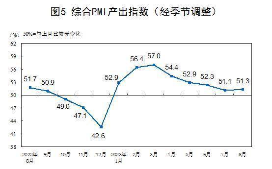 在中國綜合PMI產(chan) 出指數運行情況方麵,8月份,綜合PMI產(chan) 出指數為(wei) 51.3%,比上月上升0.2個(ge) 百分點,繼續保持在擴張區間,表明我國企業(ye) 生產(chan) 經營活動總體(ti) 穩定擴張。