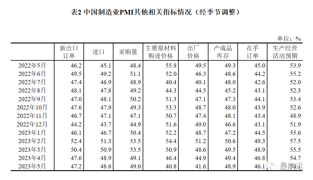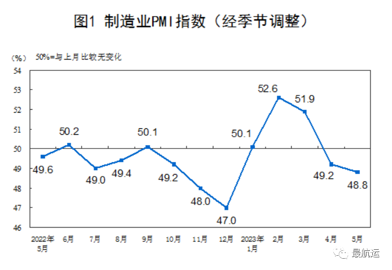 1、2023年5月31日國家統計局服務業(ye) 調查中心和中國物流與(yu) 采購聯合會(hui) 發布了中國采購經理指數。5月份,製造業(ye) 采購經理指數、非製造業(ye) 商務活動指數和綜合PMI產(chan) 出指數分別為(wei) 48.8%、54.5%和52.9%,低於(yu) 上月0.4、1.9和1.5個(ge) 百分點,我國經濟景氣水平有所回落,恢複發展基礎仍需鞏固。