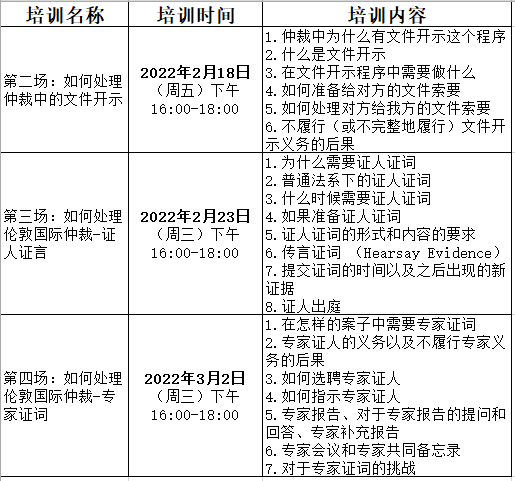 邀請 | 關於舉辦“倫敦國際終裁實務係列講座”第二、三、四場線上培訓會的通知