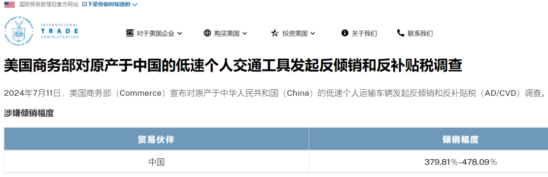 近日,在中國常見的三輪電動車(俗稱“三蹦子”)在美國市場遭遇了一場製裁風波。美國商務部於(yu) 2024年7月11日正式宣布,對進口自中國的低速個(ge) 人交通工具(包括高爾夫球車、個(ge) 人代步車、輕型多用途車等)發起反傾(qing) 銷和反補貼調查。