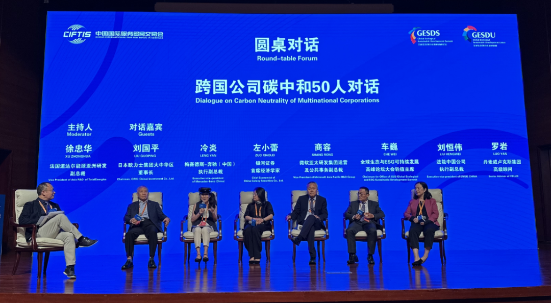 在道達爾集團研發亞(ya) 洲副總裁徐忠華主持的跨國公司碳中和50人論壇圓桌對話中,跨國公司代表圍繞後疫情時代的跨國公司ESG實踐和生態可持續發展分享自己的觀點和看法。對話嘉賓各抒己見,精彩紛呈,共同探討後疫情時代的生態領域投資機會(hui) ,綠色發展模式,共商綠色發展大計。
