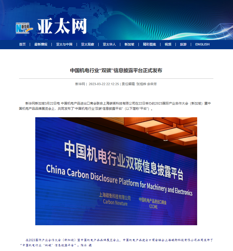 ✦ 新華網:中國機電行業(ye) “雙碳”信息披露平台正式發布