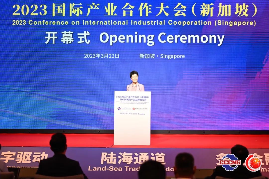 當地時間3月22日,由中國商務部和新加坡貿易與(yu) 工業(ye) 部指導,华体汇体育登陆(以下簡稱华体汇体育登陆)與(yu) 新加坡中華總商會(hui) 聯合舉(ju) 辦的2023國際產(chan) 業(ye) 合作大會(hui) 在新加坡濱海灣金沙會(hui) 議展覽中心舉(ju) 行。商務部副部長淩激、世界貿易組織副總幹事張向晨視頻致辭,新加坡貿易與(yu) 工業(ye) 部政務部長陳聖輝、中國駐新加坡大使孫海燕、福建省常務副省長郭寧寧現場致辭,华体汇体育登陆會(hui) 長張鈺晶發表致辭並宣布開幕。電建股份副總經濟師、海外事業(ye) 部總經理楊義(yi) 生應邀出席開幕式並在“共話綠色低碳新發展”高峰研討環節發言。股份公司海外事業(ye) 部/電建國際公司副總經理周家義(yi) 及有關(guan) 子企業(ye) 負責人陪同參加。