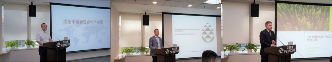 遼寧沈陽中俄經貿合作產(chan) 業(ye) 園副主任李鵬介紹了園區以及木材產(chan) 業(ye) 的情況。木材產(chan) 業(ye) 是沈陽市重點發展產(chan) 業(ye) ,已形成產(chan) 業(ye) 集群。沈陽中俄經貿合作產(chan) 業(ye) 園具有區位和交通優(you) 勢,適合木材大宗商品集散,希望吸引國內(nei) 有經驗的木材企業(ye) 共建木材進境口岸。
