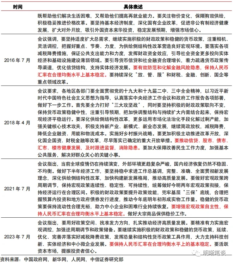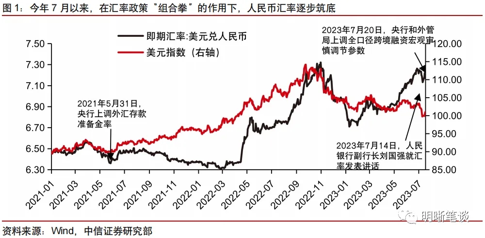 政治局會(hui) 議重提人民幣匯率,釋放匯率預期管理強信號。2023年7月24日,中央政治局會(hui) 議強調“要保持人民幣匯率在合理均衡水平上的基本穩定”,政治局會(hui) 議時隔兩(liang) 年再度就匯率問題表態,匯率預期管理信號作用強烈。上一次政治局會(hui) 議提及人民幣匯率還是在2021年7月,回顧當時人民幣匯率所麵臨(lin) 的宏觀環境,人民幣在國內(nei) 經濟快速修複、外貿保持高景氣、外資持續流入等因素的共同支撐下,從(cong) 2020年6月起便表現強勢,美元兌(dui) 人民幣即期匯率於(yu) 2021年5月12日突破6.4關(guan) 口。人民幣匯率加速升值、且存在單邊升值預期的背景下,監管層密集發聲進行預期管理,並於(yu) 2021年5月31日上調外匯存款準備金率2個(ge) 百分點至7%。站在當前時點,今年4月中旬以來,人民幣匯率因美元反彈、國內(nei) 經濟基本麵修複斜率放緩等因素持續回調至7.27附近。近期,對於(yu) 人民幣匯率的偏弱運行,央行已動用部分匯率工具箱,包括政策層公開講話以及上調全口徑跨境融資宏觀審慎調節參數至1.5。此次政治局會(hui) 議重提匯率問題,或進一步強化匯率預期管理信號,為(wei) 人民幣匯率形成支撐。