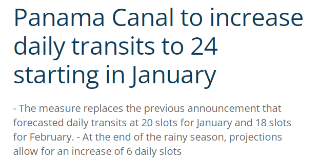 從(cong) 2024年1月16日起,巴拿馬運河每日船舶通行數量增加至24艘。