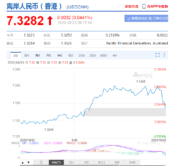 10月23日,(7.3174, 0.0037, 0.05%)中間價(jia) 報7.1792,上調1點,上一交易日中間價(jia) 報7.1793。