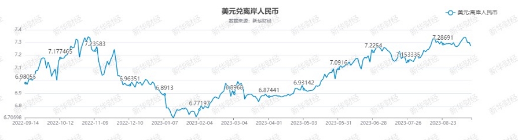 北京9月14日電(馬萌偉(wei) )9月13日,美國最新公布的通脹數據頑固,市場對美聯儲(chu) 11月加息的預期升溫,美元指數徘徊一周低位,離岸人民幣兌(dui) 美元一度升破7.27關(guan) 口,較9月8日尾盤反彈928點。