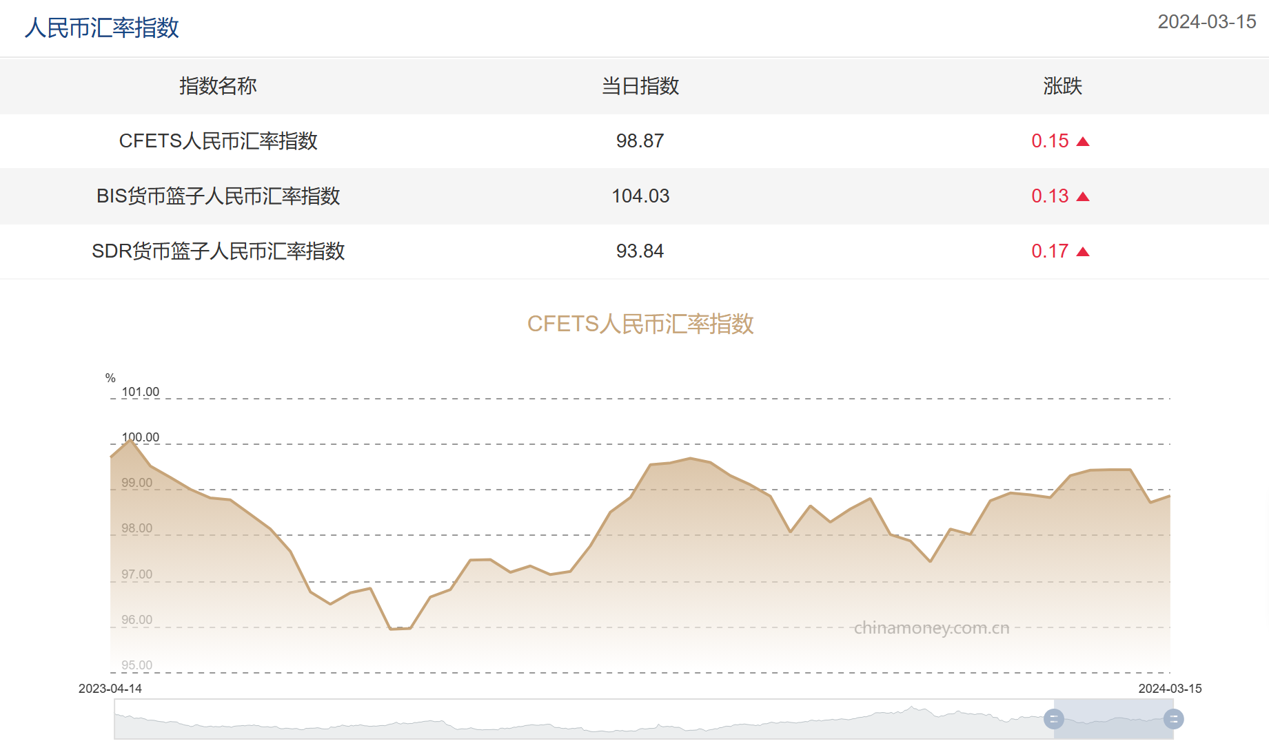 三大人民幣匯率指數走勢平穩 圖片來源:中國貨幣網