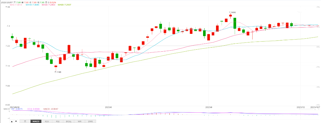 9月製造業重回榮枯線上方,美元兌人民幣日線圖