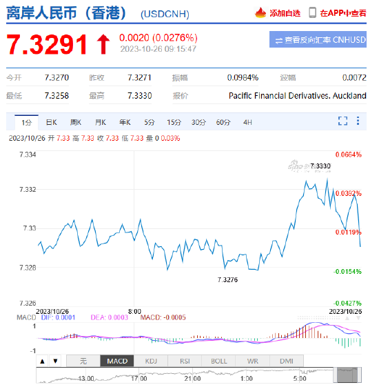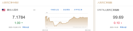 10月26日,(7.3178, 0.0013, 0.02%)中間價(jia) 報7.1784,上調1點,上一交易日中間價(jia) 報7.1785。