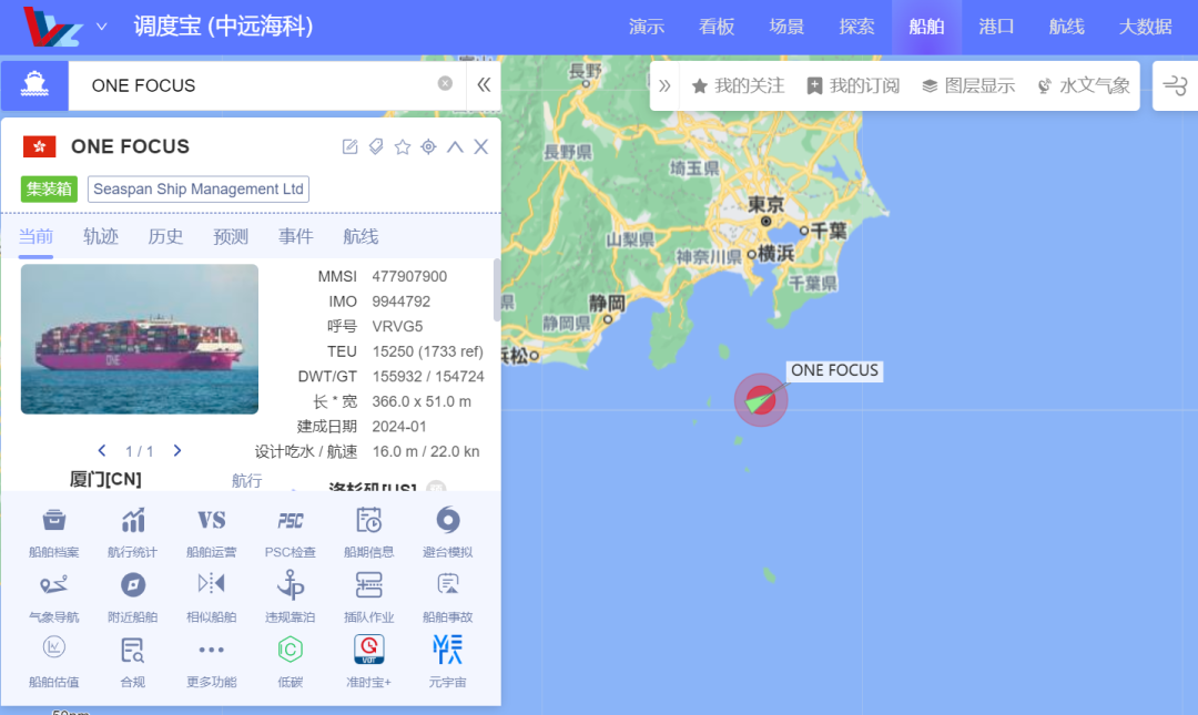 馬士基也從(cong) ONE那裏租用了一艘新建的、懸掛中國香港船旗船舶,運力為(wei) 15000TEU的集裝箱船ONE Focus輪。