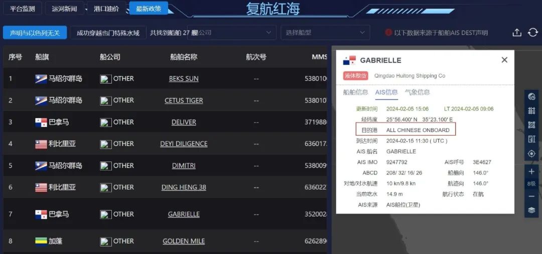 招中國船員、在AIS信息中標注全員中國籍、航行過程中插五星旗、集結在紅海航道入口,等待一艘中國船經過,然後直接“強組CP”……總而言之,想盡一切辦法,強調自己的中國背景,這一刻“CHINESE”猶如護航軍(jun) 艦一般讓人溫暖安心。