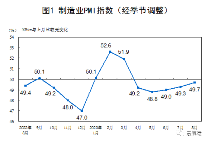1、2023年8月31日國家統計局服務業(ye) 調查中心和中國物流與(yu) 采購聯合會(hui) 發布了中國采購經理指數,PMI為(wei) 49.7%,比上月上升0.4個(ge) 百分點,製造業(ye) 景氣水平進一步改善,不過仍在收縮區間。