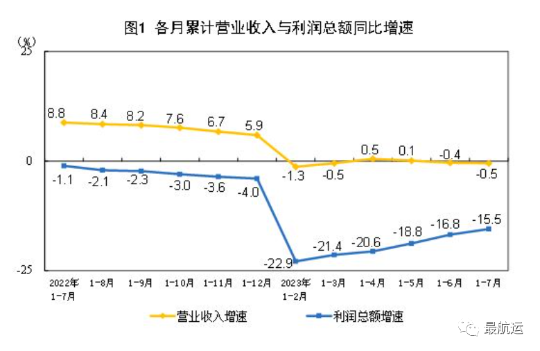 7、1—7月份,全國規模以上工業(ye) 企業(ye) 實現利潤總額39439.8億(yi) 元,同比下降15.5%,降幅比1—6月份收窄1.3個(ge) 百分點。