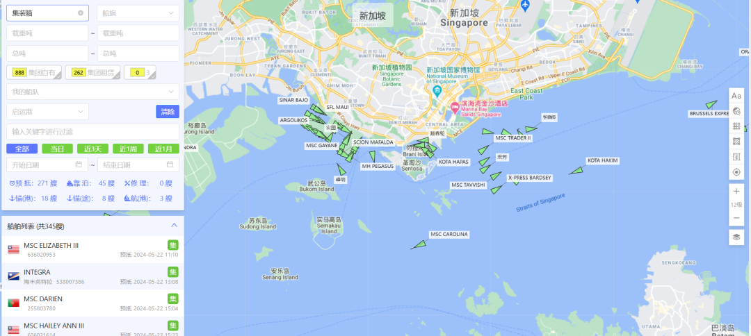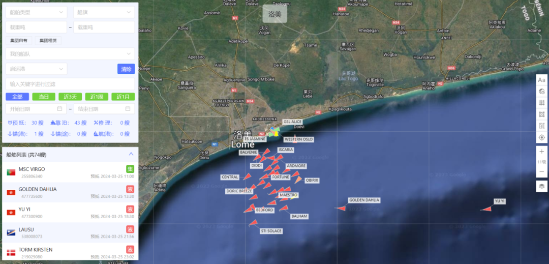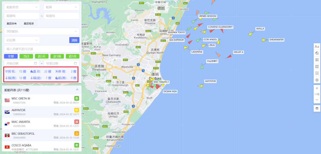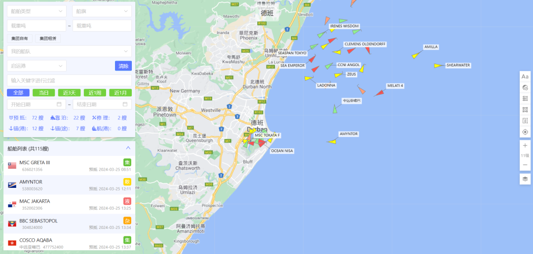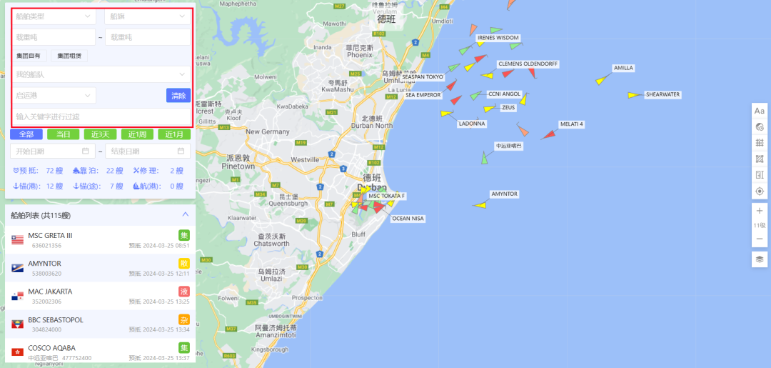 支持按照船舶類型、船旗、載重噸、我的船隊、啟運港等條件過濾篩選,也可自定義(yi) 輸入關(guan) 鍵詞進行過濾,以達到精準檢索的目的。