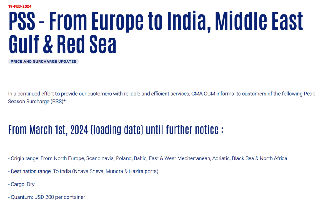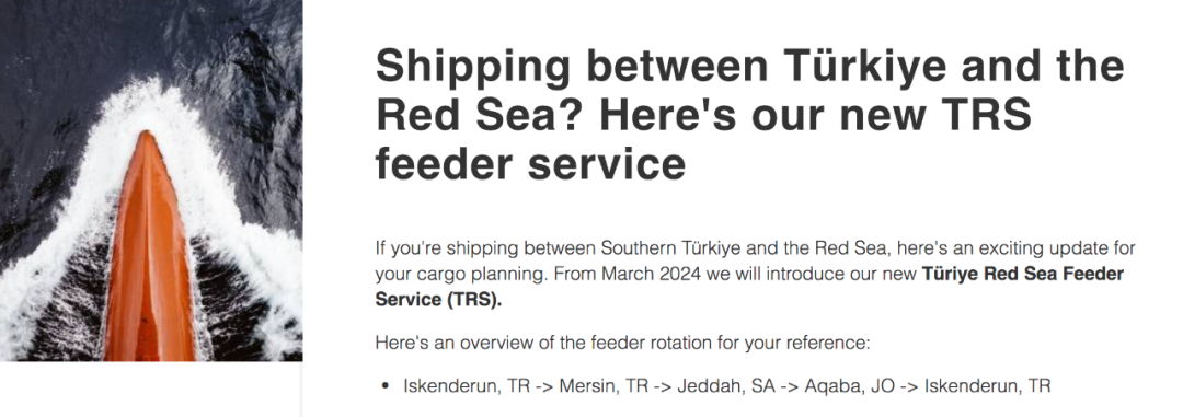 赫伯羅特推出土耳其-紅海支線航線TRS,馬士基、達飛調整紅海旺季附加費,歐盟啟動紅海護航行動。