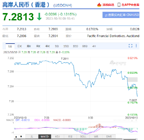 10月10日,(7.2936, 0.0030, 0.04%)中間價(jia) 報7.1781,上調8點,上一交易日中間價(jia) 報7.1789。