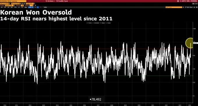 持續貶值的韓元促使韓國當局日內(nei) 就匯率波動發出了警告。韓國當局表示,外匯單邊過度波動不可取,將密切監測外匯波動、供求情況。不希望出現過度的單邊外匯波動。