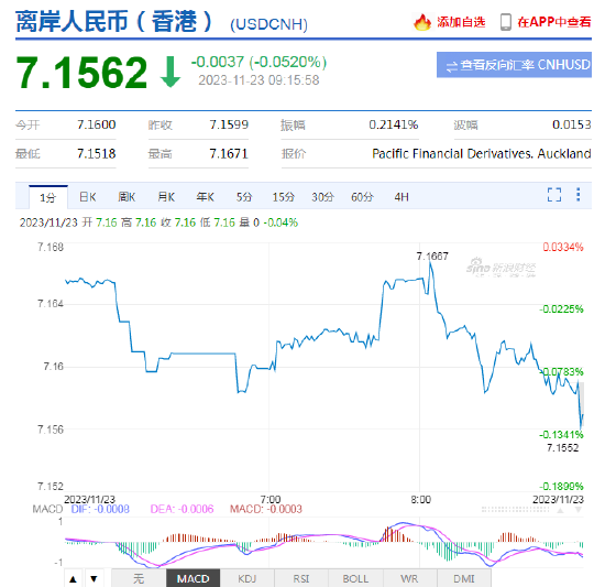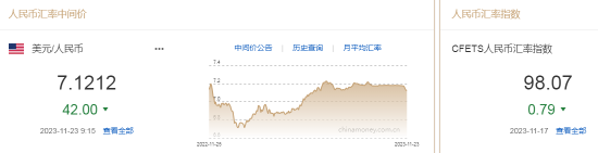 11月23日,人民幣(7.1362, -0.0073, -0.10%)中間價報7.1212,上調42點,上一交易日中間價報7.1254。