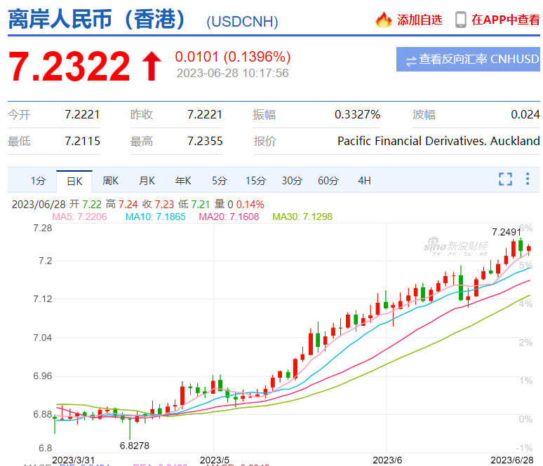 在岸價一度貶到了7.24附近,離岸價一度貶到了接近7.25(下圖)。