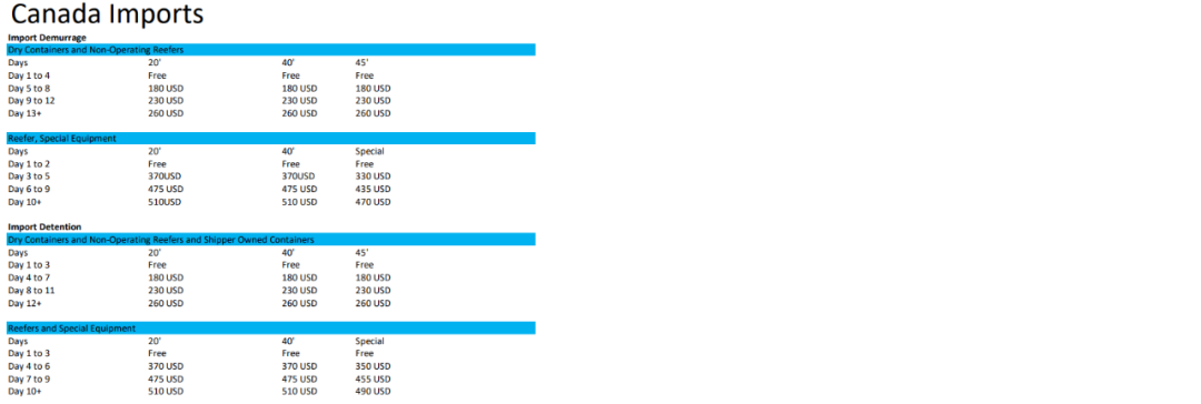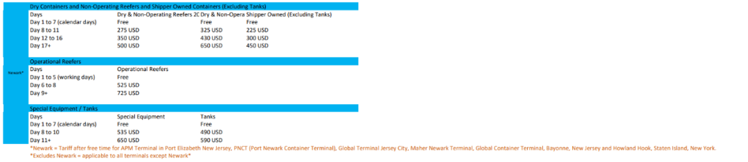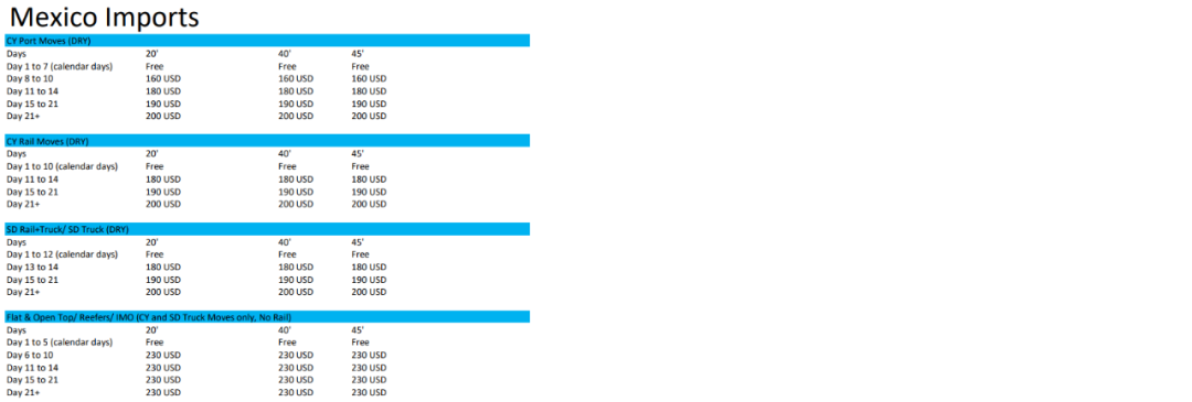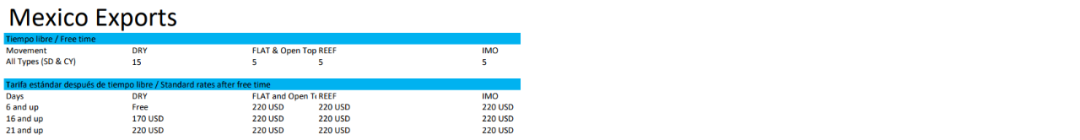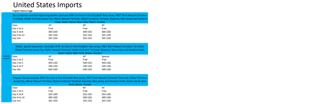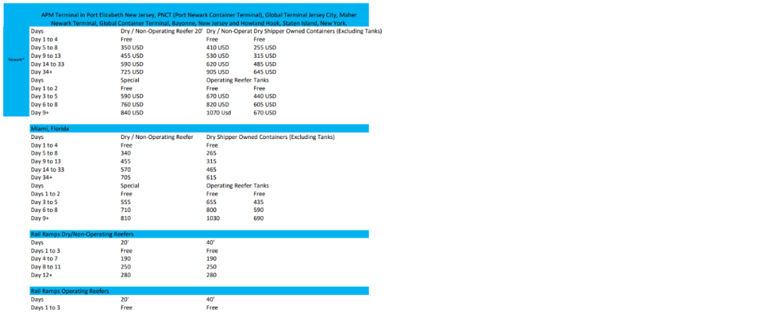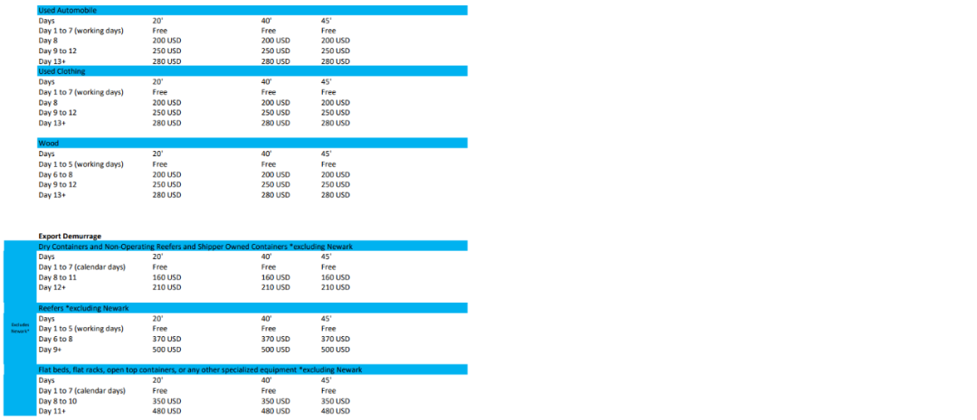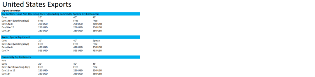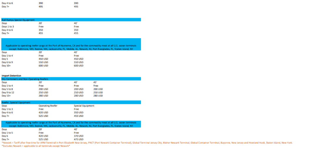 對於(yu) 美國,所有級別和設備類型的費率增加20美元,僅(jin) 適用於(yu) 進口滯期費和進出口滯留費。免費時間水平保持不變。