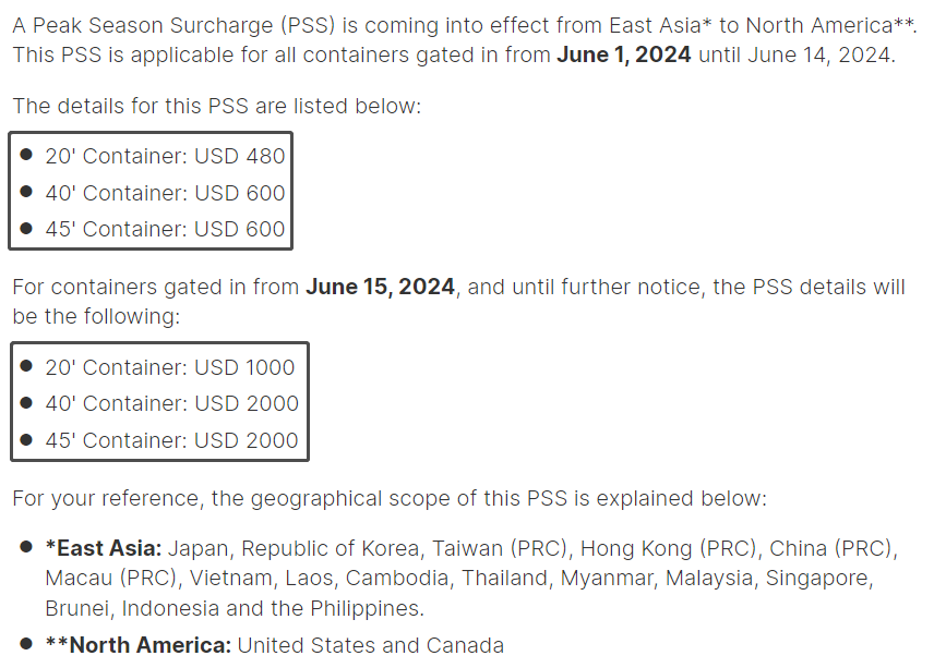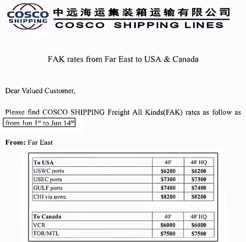6月1日開始,海運費上調正式生效!