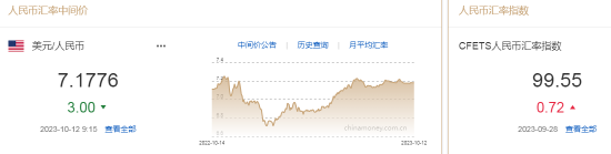 10月12日,(7.2996, 0.0014, 0.02%)中間價(jia) 報7.1776,上調3點,上一交易日中間價(jia) 報7.1779。
