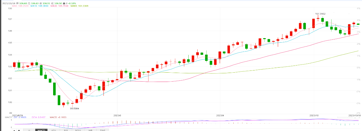 美元指數上周呈現先抑後揚走勢,在10月13日最低跌至105.53後,日內(nei) 隨即大幅反彈,截止周一亞(ya) 洲市場基本圍繞106.55附近運行。在反彈過後美指突破5、10日均線壓製,短期強勢特征有望進一步延續,上方關(guan) 注前期高點107.35的目標位。