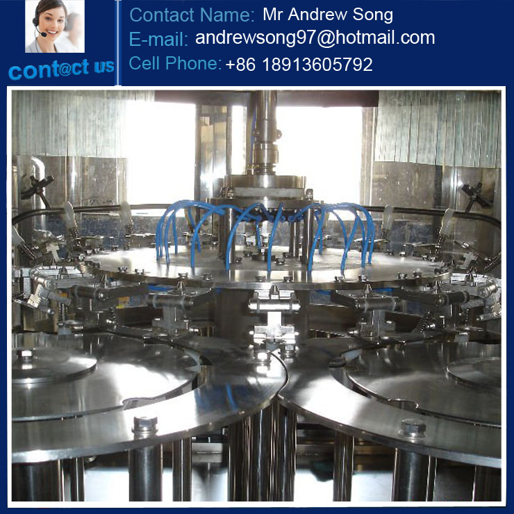 l. Rotary wheel fully made of stainless steel SUS 304. 2. Gravity filling method. 3. Filling valves are made of SUS316L. 4. Filling valves are reasonably structured with accurate filling. 5. Bottles go up and down in the function of cam through elevator, to process filling with contact to bottle-mouth. 6. Level of cylinder is controlled with float-ball.